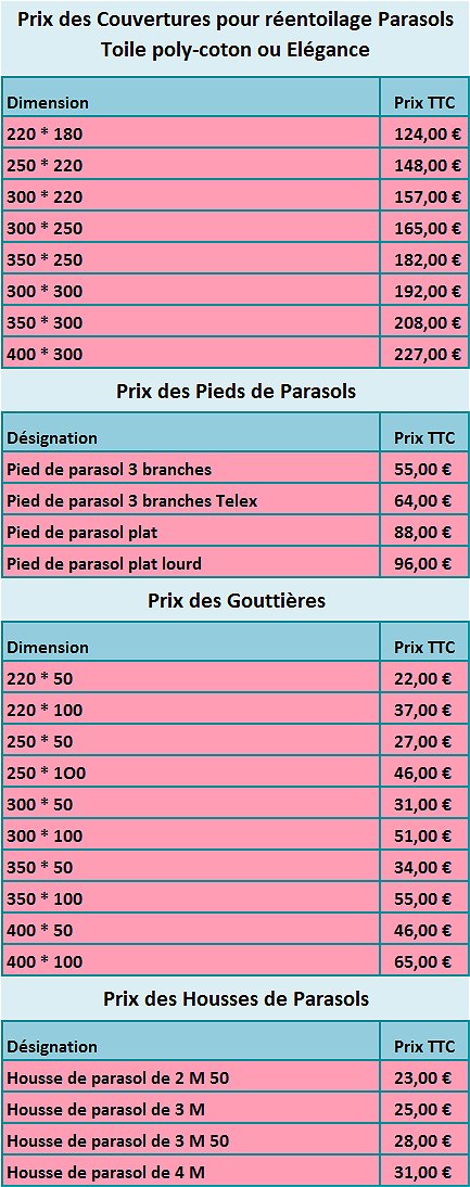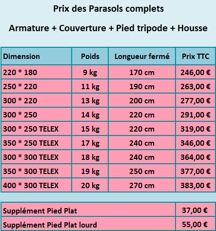 Une Gouttière de 50 cm de large offerte pour l'achat de 2 parasols